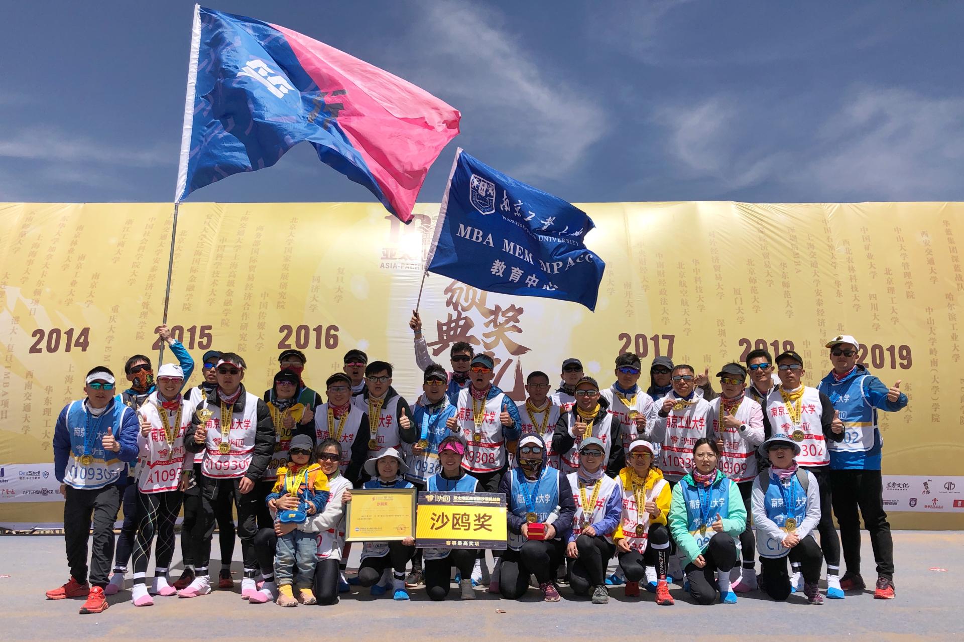 亚沙赛是亚太地区顶级商学院户外赛事被誉为MBA第二课堂,已连续成功举办十届,覆盖50万以上商学院MBA群体。沙十参赛院校121所,参赛人数达4000余人,再创历史之最。所有队员须在规定时间内完成100公里、70公里、36公里不同组别的沙漠徒步越野比赛,体验和践行“环保、协作、坚持、责任”的赛事理念。今年赛事新设“金沙鸥奖”,增设超级A队100公里赛道,须同时满足有超A队员完赛、AB队全员完赛、C队人数超过10人三个条件。“风沙疾雨犹洗面,夜寒昼暑只等闲”,南工大笃行队没有辜负平日的训练,没有屈服赛事的艰苦,历经三日协作拼搏全员完赛勇夺沙鸥,展示了南工大MBA学员风采、彰显了公司MBA品牌与实力。