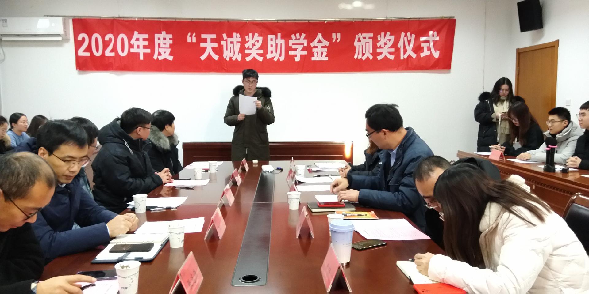 首先,岳克勤介绍出席来宾,并向德道天诚公司在经管学院设立“天诚奖助学金”表示诚挚的感谢。副经理姚山季宣读了2020年度“天诚奖助学金”获奖名单。梁国庆、李传勇为获奖同学一一颁奖。