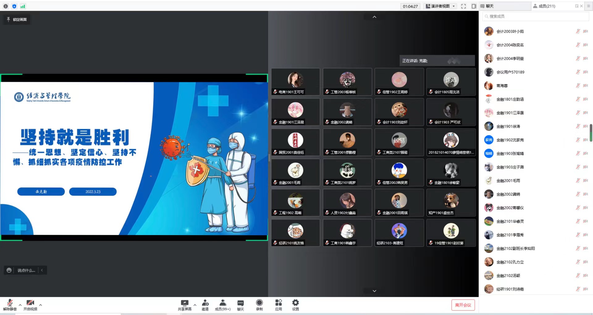 为有效应对当前疫情防控严峻形势,进一步提高员工干部的职责,引导员工干部发挥模范带头作用,确保疫情防控及各项员工工作有序推进,bw西汉姆联于3月23日开展员工干部疫情防控线上专题会议,公司党委副书记岳克勤、全体辅导员及各班班长、团支书参加会议。