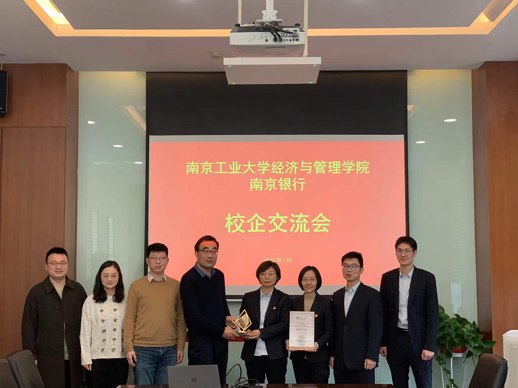 为推动和促进校企合作,进一步实现高质量就业,1月12日,经管与管理公司党委副书记岳克勤、经理助理夏后学、学院教师徐涛、辅导员黄雨榴一行4人代表学校赴南京银行总行举行年度最佳用人单位授牌并就进一步合作进行洽谈交流。公司人力资源部副总经理王莉、人力资源部招聘与配置管理部经理王倩竹等参加座谈会。