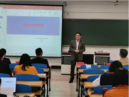 比赛开始前,吴斌副经理介绍评委及参赛老师。王冀宁经理鼓励老师们提高本科教学质量,学校的激励政策将给予教师发展保障,望各位老师赛出水平。