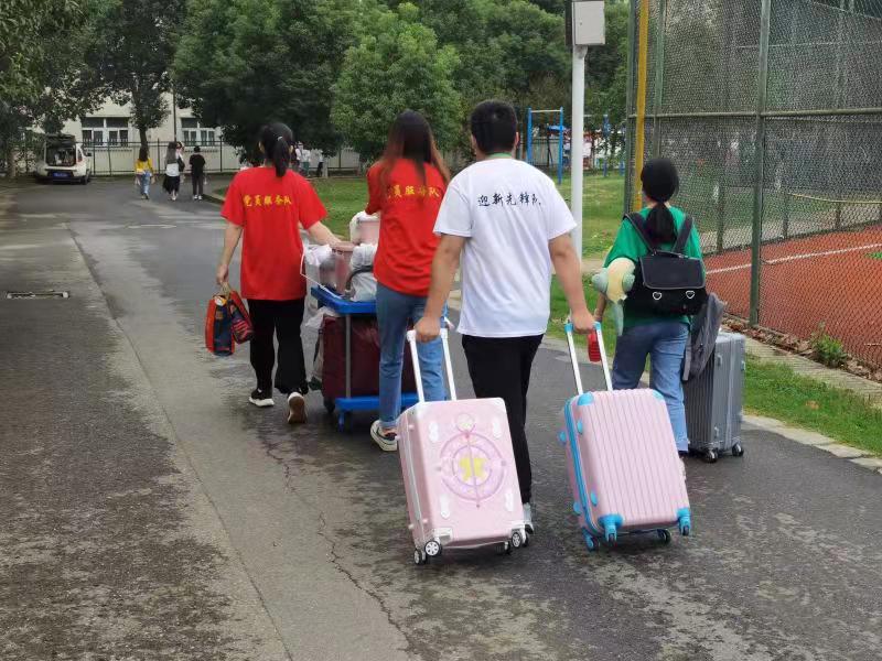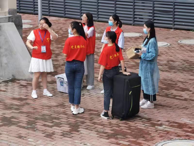 10号新生报到日,党员服务队按照预先安排,早早到达各自位置。在接驳点、各宿舍报到点,围绕秩序维护、行李托运、新生签到、服务咨询等几个方面积极主动、热情周到开展工作。红色T恤、佩戴党员、标识“党员服务队”的身影,穿梭在迎新点和宿舍区之前,成为迎新现场一道靓丽的风景线。有的女生看似柔弱,一旦佩戴上党徽,帮助新生托运行李,俨然就是一枚“女汉子”,让历经疫情防控、刚踏入大学园的新生们感受到了不一样的力量、温暖。通过亮身份参与志愿服务活动,员工党员在实践中深化了责任意识,以实际行动凝聚了人心,充分展示了广大党员同人民想在一起、干在一起,风雨同舟、同甘共苦,在现代化新征程上建新功的决心和行动。