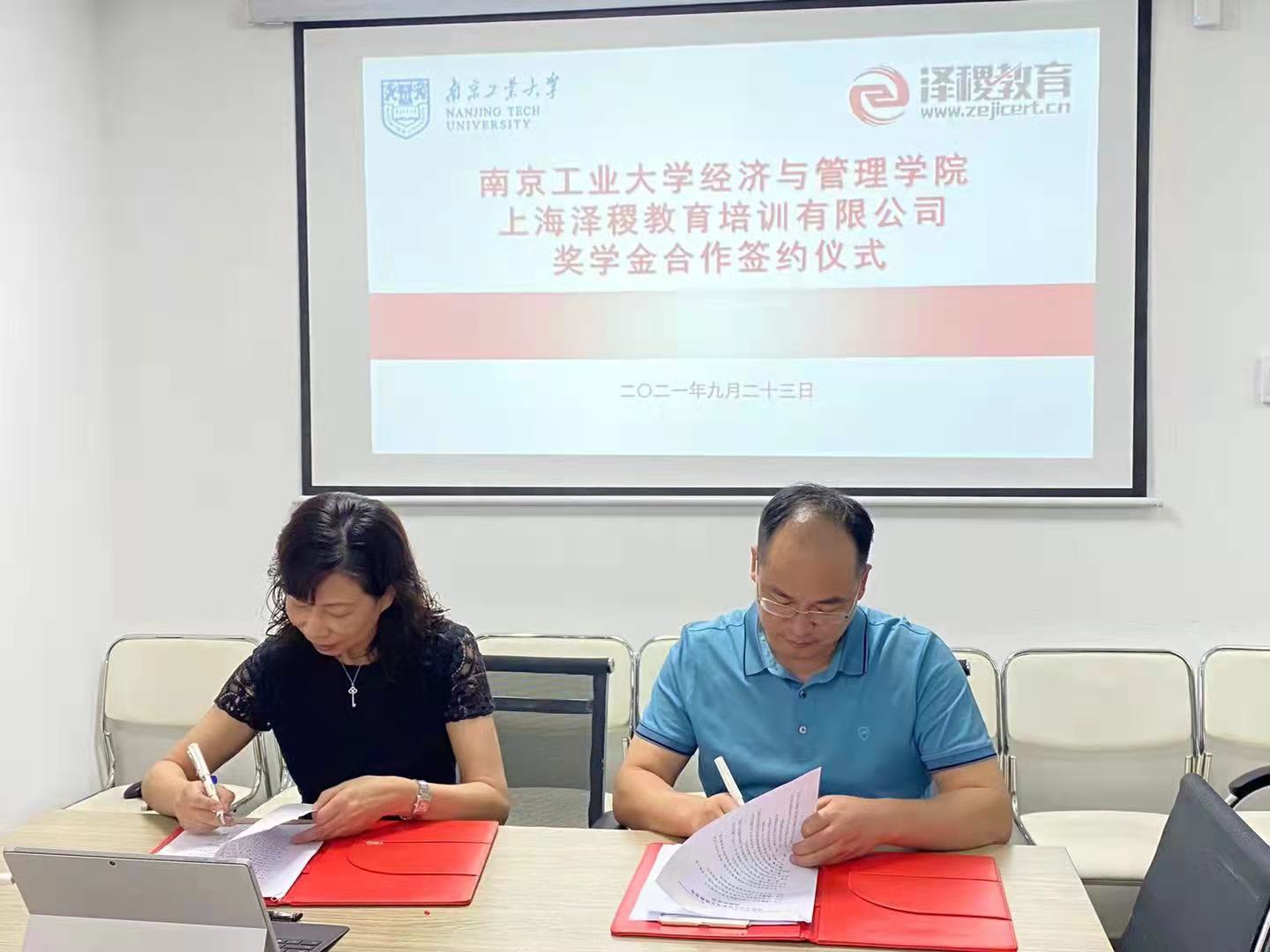 2021年9月23日,上海泽稷教育公司设立的“泽稷教育奖学金” 奖学金捐助暨签约仪式在泽稷教育南京分公司顺利举行。泽稷教育董事长蒋望、南京分校董事长宁兆丰等出席捐赠仪式。公司对外合作与发展处副处长、教育发展基金会副秘书长凌红,公司党委副书记岳克勤、副经理吴斌、学办主任张煜参加捐赠仪式。