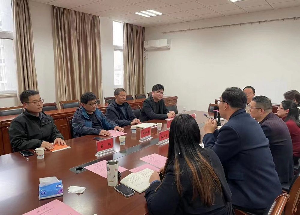 3月23日,淮安市金湖县商务局罗广忠副局长、江苏喜客科技有限公司总经理吕鹏等一行来公司调研工作。公司党委副书记岳克勤、副经理吴斌、市场营销、电子商务、国际贸易等专业负责人参加座谈。