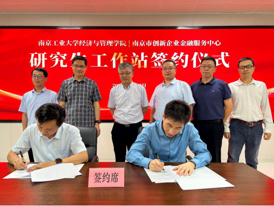 南京市创新企业金融服务中心董事长高俊忠介绍了公司概况、主要业务及数字创新难点。副经理陈庭强介绍了学院总体概况、金融硕士培养特色与产学研合作契机;经理王冀宁从产教融合、理论实务研究、社会服务三方面交流了双方未来合作领域;公司党委书记赵顺龙重点阐述了学院在专业人才培养、科技创新服务、知识产权建设等方面的发展理念,并就今后如何依托研究生工作站开展有深度有特色的人才培养与社会服务进行了深入交流。会上,经管学院与南京市创新企业金融服务中心签署共建研究生工作站协议。