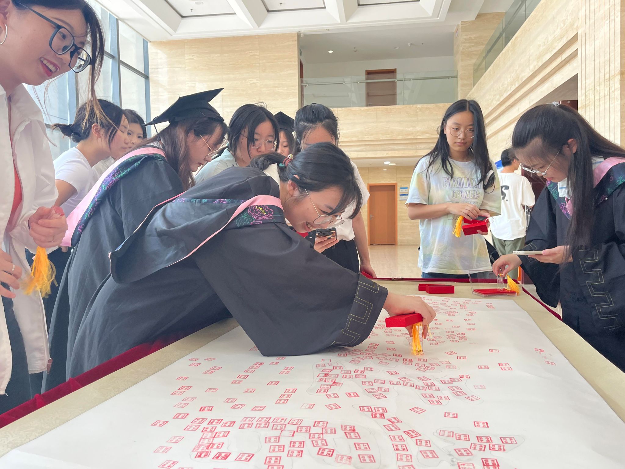 毕业生们用自己的印章绘制成“吾爱经管”卷轴敬赠母院