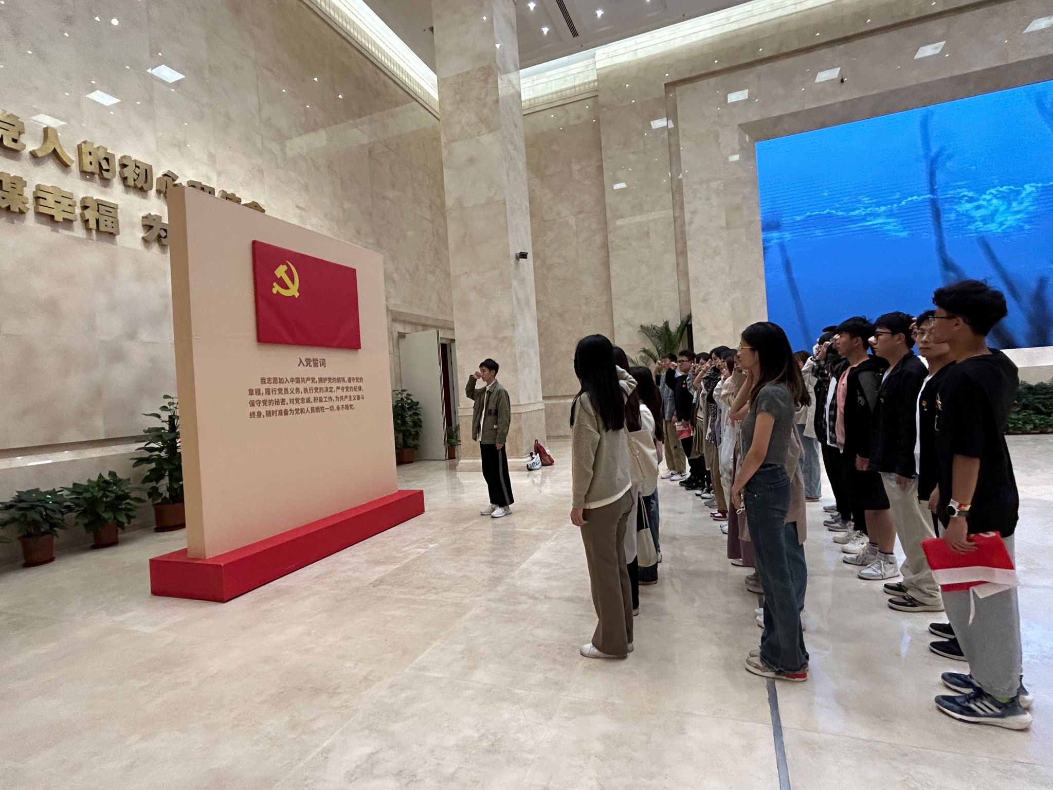 在“胜利之师”雕像前,党员面向党旗重温了入党誓词,进一步强化党员意识、增强党性观念。参观中,大家不时驻足观看陈列展品和影片,认真聆听讲解员的现场讲解,相互交流着心得感受,体会着革命先烈对革命事业必胜的壮志豪情,对革命前辈们抛头颅、洒热血的革命精神无比崇敬。支部党员纷纷表示,要沿着革命先辈开创的解放之路、胜利之路,接续奋斗、勇往直前,立志做共产主义远大理想和中国特色社会主义共同理想的坚定信仰者和忠实践行者,不负时代、不负韶华,以实际行动践行党的二十大精神。支部书记在总结时希望全体党员能够以此次主题党日活动为契机,更加坚定共产党员的理想信念,在学习工作生活中注重发挥先锋模范作用;更加注重从真实历史事件中汲取力量,补足精神之钙。