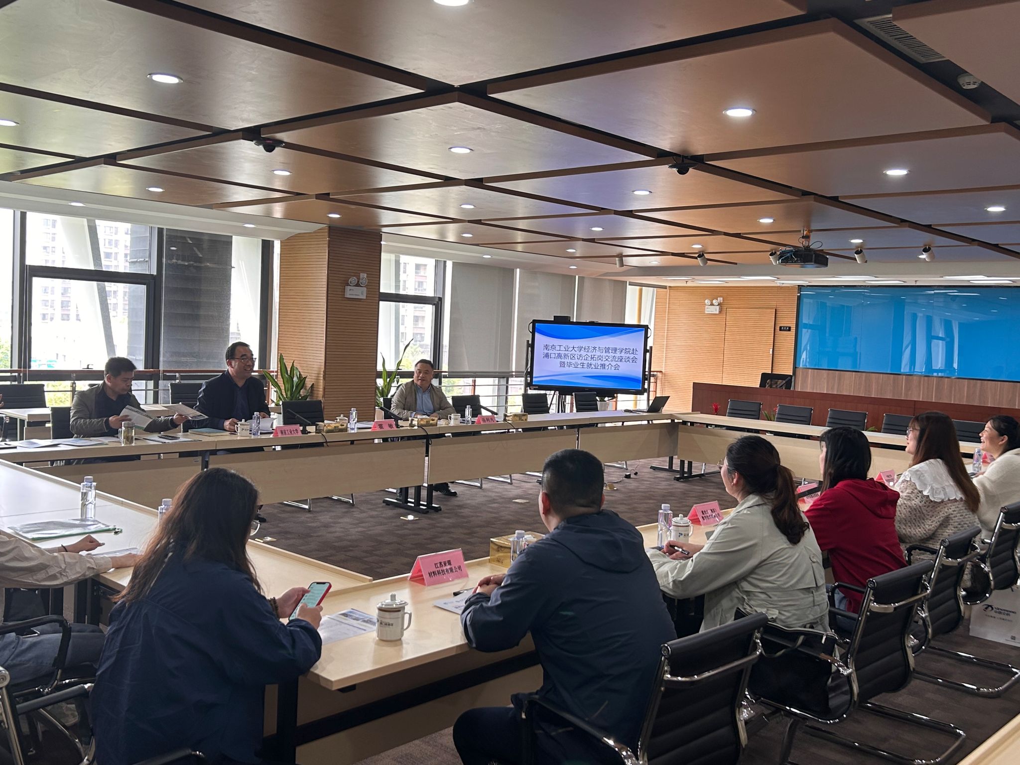 4月14日,公司党委副书记岳克勤、副经理吴松强、工商管理系主任刘新燕、毕业班辅导员、部分23届毕业生等一行赴浦口高新区科创投资集团进行访企拓岗暨毕业生就业推介。南京市浦口高新区科创投资集团副总经理霍敏、浦口区民用无人驾驶航空试验区领导小组专办副主任岳利凡带领园区7家重点企业代表参加了座谈会。