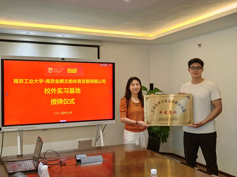 付翔总经理重点介绍了金鳞文教体育发展有限公司创业以来的发展历程、行业前景以及经营亮点等,给在座的参与人员带来了良好的启发。工商管理系主任刘新艳介绍了工商管理专业建设和人才培养情况。大家围绕员工实习实践等合作内容进行了深入交流,并举行了工商管理专业劳动实践基地的授牌仪式。参加活动的相关人员现场参观了Golden Scales全力运动,就公司的运营流程和品牌建设等进行全面了解。