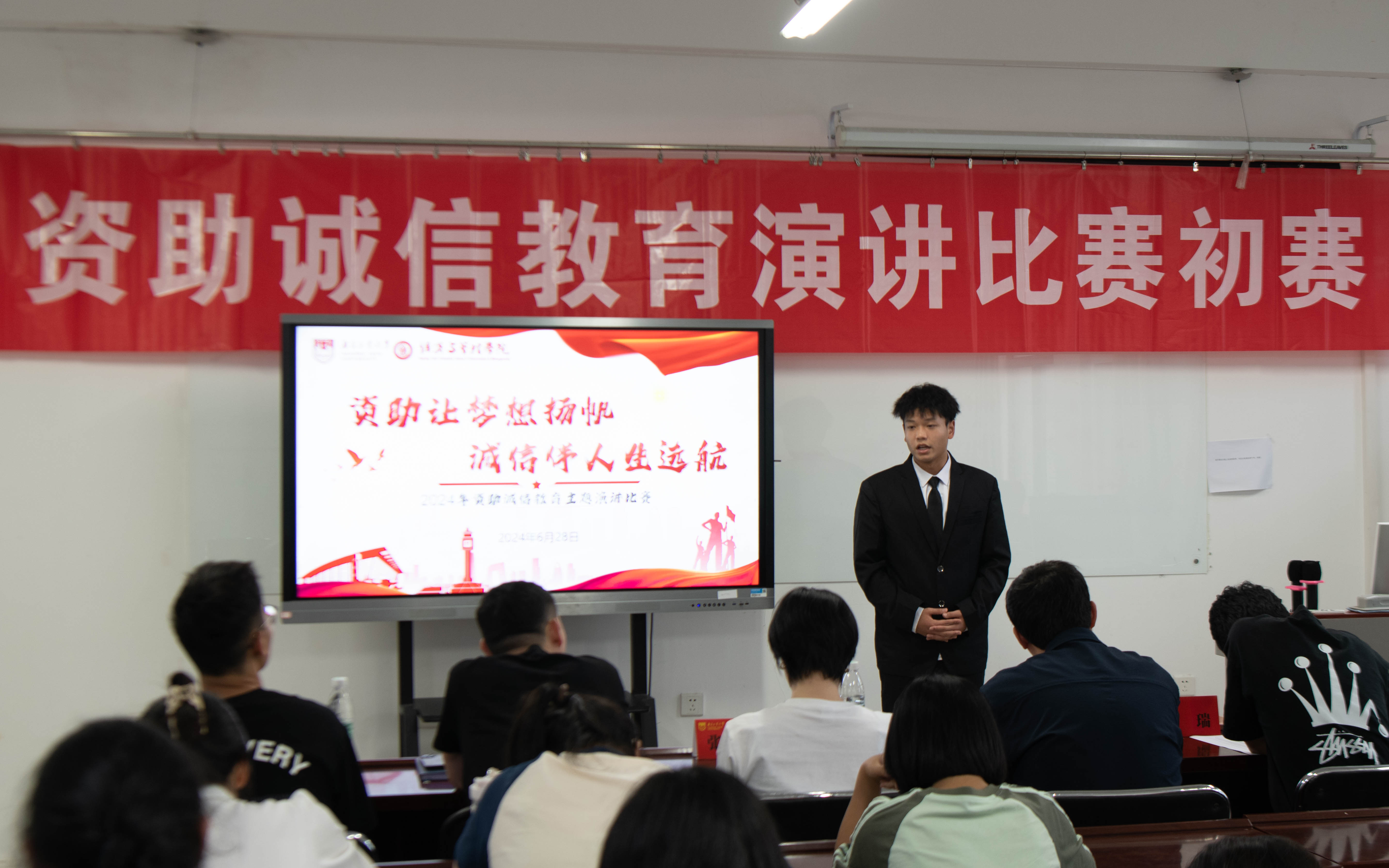 为扎实推进“三全育人”综合改革,提升学院资助育人实效,6月28日下午,由学工处主办,学院承办的校资助诚信教育演讲比赛初赛在文科楼622圆满落幕。校学工处资助科张晨曦、经管学院团委书记张倩、副书记高瑞、辅导员高峰、高烨等参加本次活动。