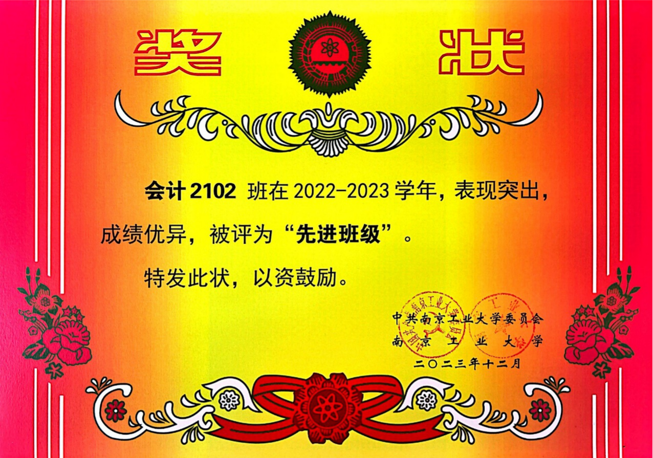 近期,学院在班级建设方面收效显著,喜讯不断,会计2102班被评为2023-2024学年度江苏省省级“先进班集体”。
