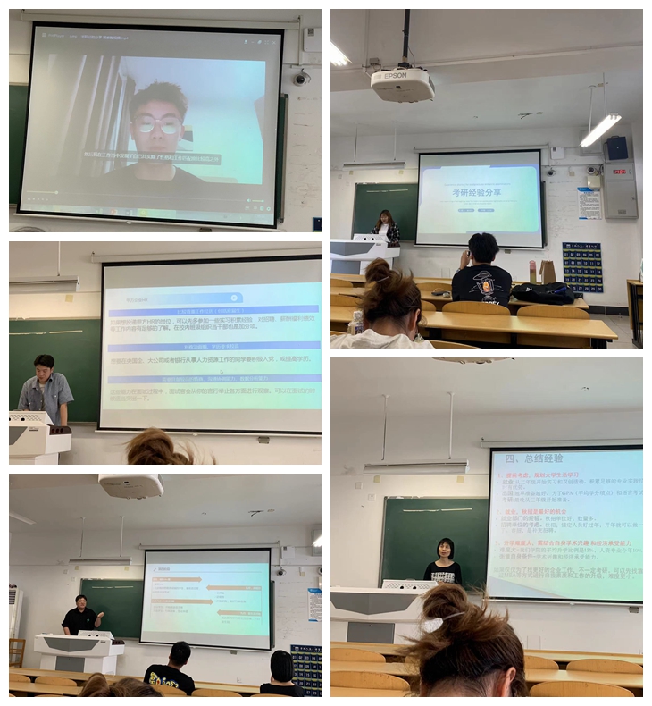人资2024届毕业生周家瀚(现供职于学而思总部人事)和傅志豪(现供职于南京银行)分享了如何实现高质量就业;人资2023届毕业生徐鹏(现就读于伦敦国王学院)就出国留学做了经验介绍;人资2022届毕业生翁宋冰(本校硕士研究生)和人资2024届毕业生周满婷(中南财经政法大学社会工作专业硕士研究生)就考研规划做了交流。整个分享过程真诚,交流过程热烈,在校人资专业员工受益匪浅。