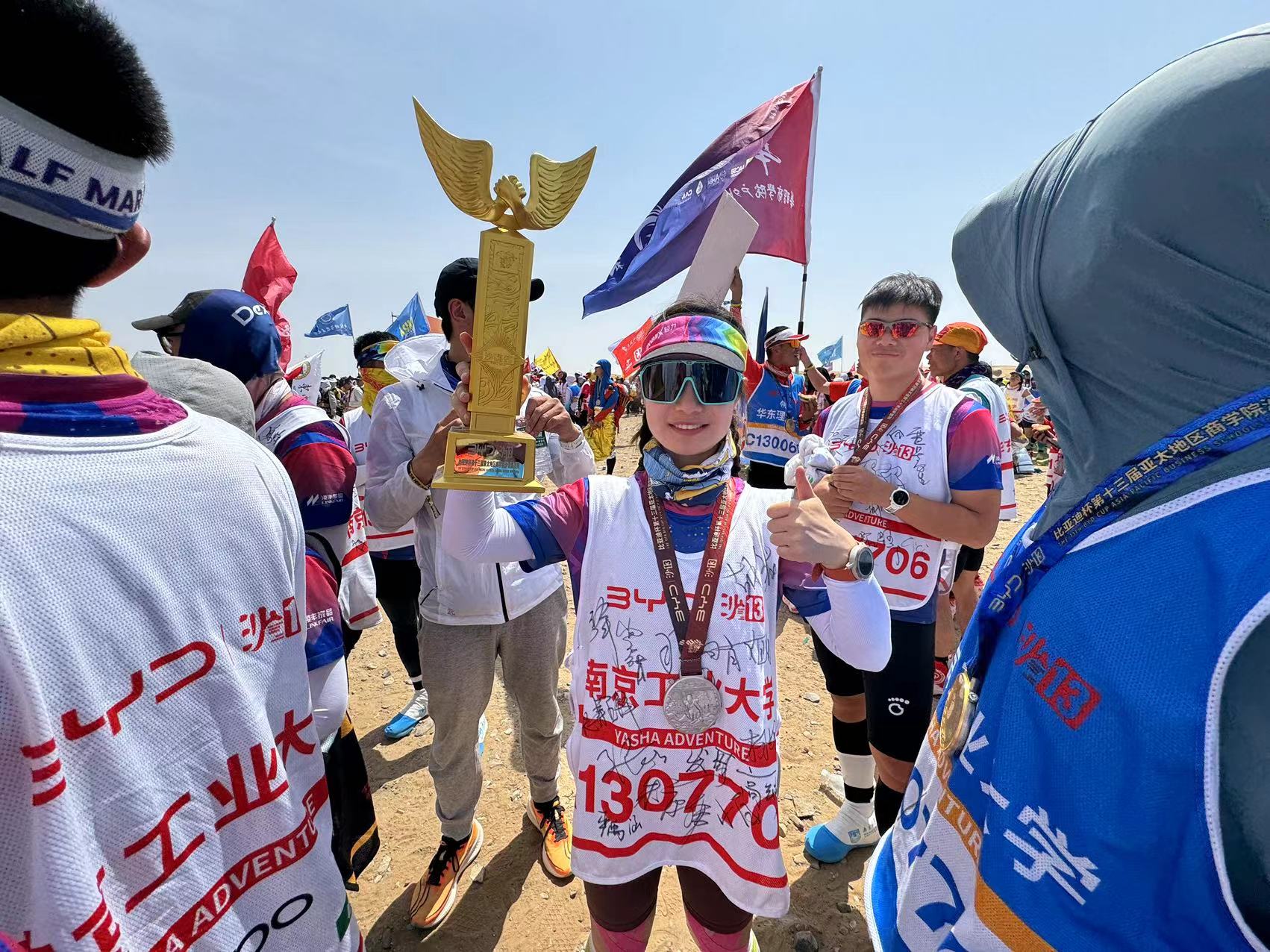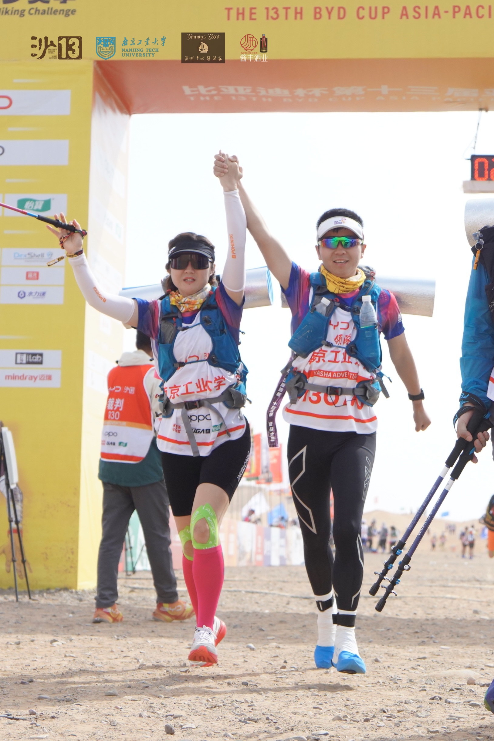 参赛者在三天规定的时间内,以团队的形式,分别累计完成99公里、70公里、33公里不同组别的沙漠徒步越野。学校MBA沙13战队32位勇士团结拼搏、紧密配合,经受住了漫天风沙的吹打、沙海冷雨的考验,全员完赛,最终取得超A队第四名历史最好成绩,团队再次举起金沙鸥。
