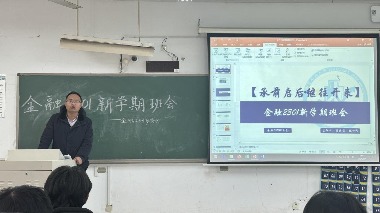3月6日,学院金融2301班召开“承前启后,继往开来”新学期主题班会。公司党委保卫处副部长徐东、辅导员蒋海蓉、班级全体同学参加活动。