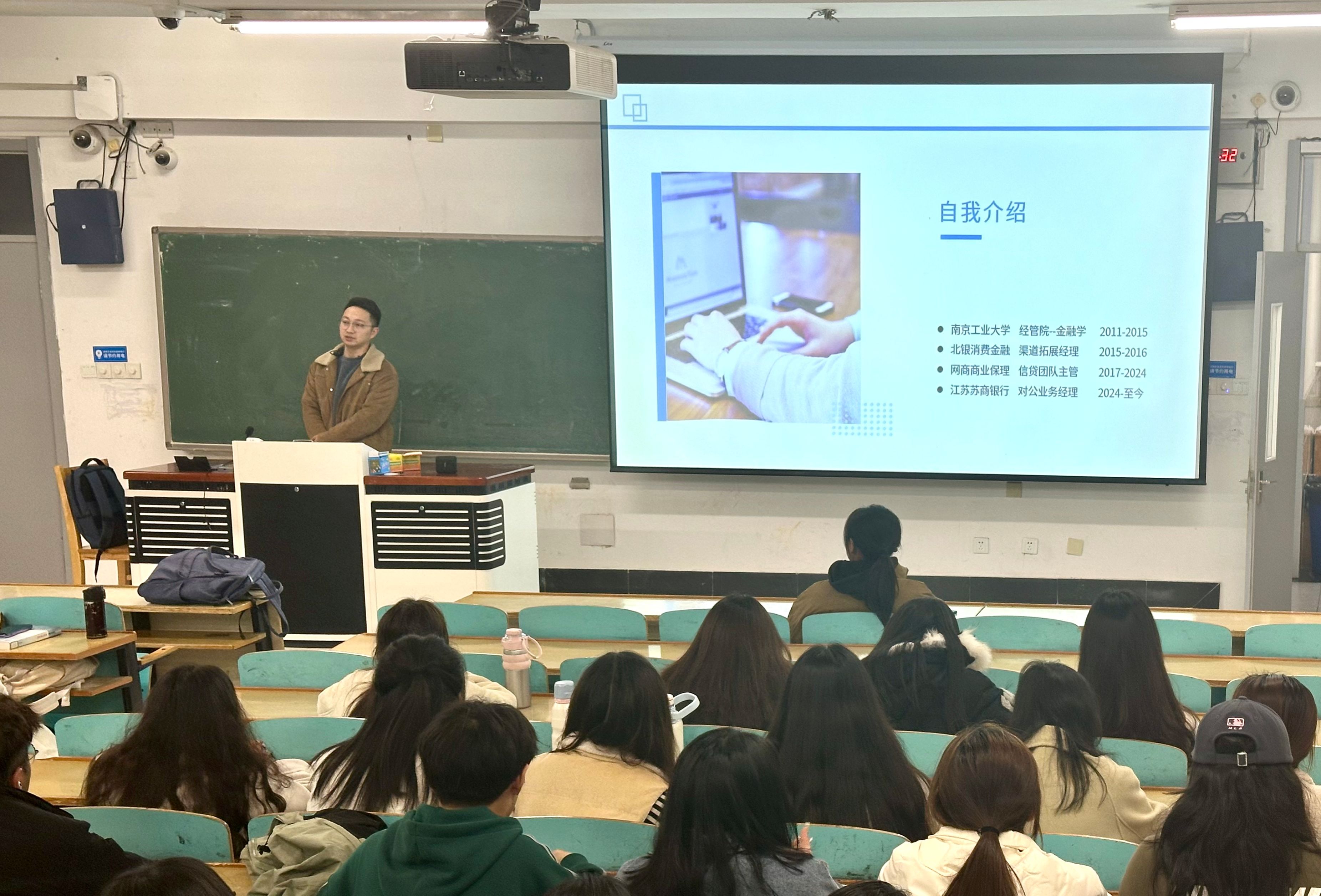 为进一步帮助员工明确专业发展方向和就业前景,提升职业生涯规划意识和能力,12月3日,金融学专业在厚学309教室举办职业生涯规划讲座,江苏苏商银行对公业务经理张磊、招商银行刘林宇两位员工走向讲台和金融学专业全体大一新生交流。