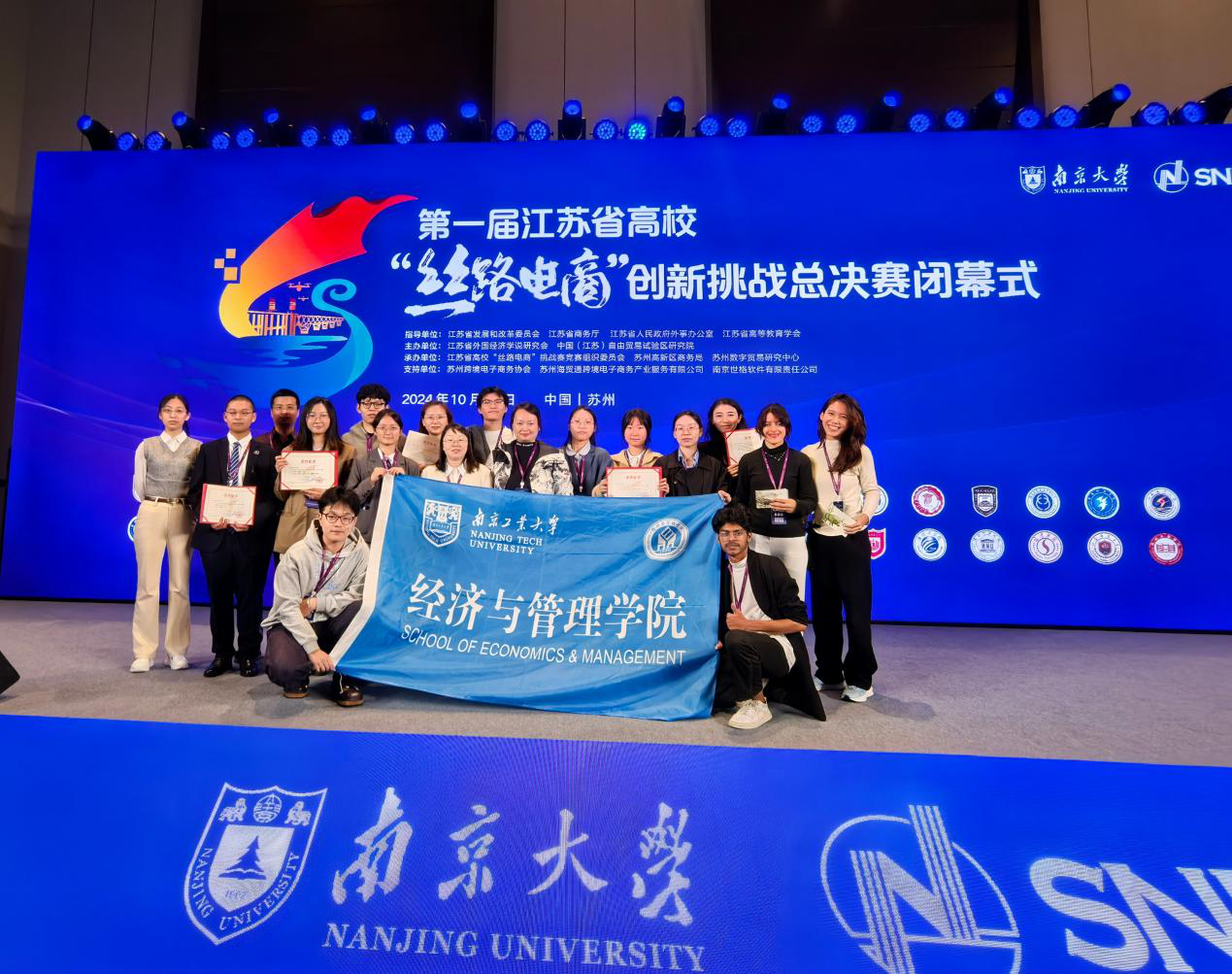 2024年10月26日,首届江苏省高校“丝路电商”创新挑战总决赛在苏州举行。公司bw西汉姆联及海外教育学院师生组成5支参赛队伍参赛,与来自全省30所高校的70多支参赛队伍同场竞技,在国际经济与贸易专业万淼、杨海峰、刘梦、熊琴、王佳琪老师的带领下获一等奖一项、二等奖两项、三等奖两项及优秀院校组织奖。该项赛事由江苏省发改委、商务厅等部门指导,江苏省外国经济学说研究会等单位主办,是《江苏省普通高校本专科生学科竞赛省级赛事目录》赛事。