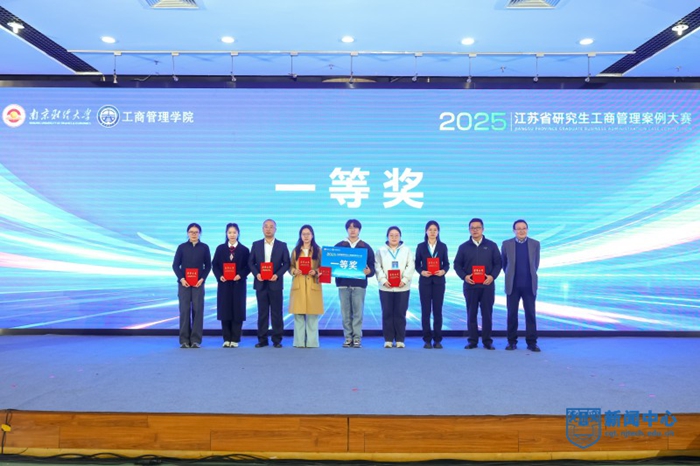 此次大赛由江苏省管理学类研究生教育指导委员会主办、南京财经大学承办,主题聚焦“人工智能赋能本土管理实践创新”。公司共三支队伍参赛:初赛阶段,各队深入案例企业调研、撰写报告,其中李宏贵、王万竹老师指导的两支队伍获得优秀奖;决赛阶段,由张长江老师指导,戴秋霞、张玲玲、杨玉颖、惠琰琦、刘月桃等九位同学参赛的“群贤毕至队”,经赛前多轮打磨集训,四名选手顶住首轮出战压力,以饱满状态完成材料汇报与提问环节,结合初赛盲审成绩最终跻身前列。