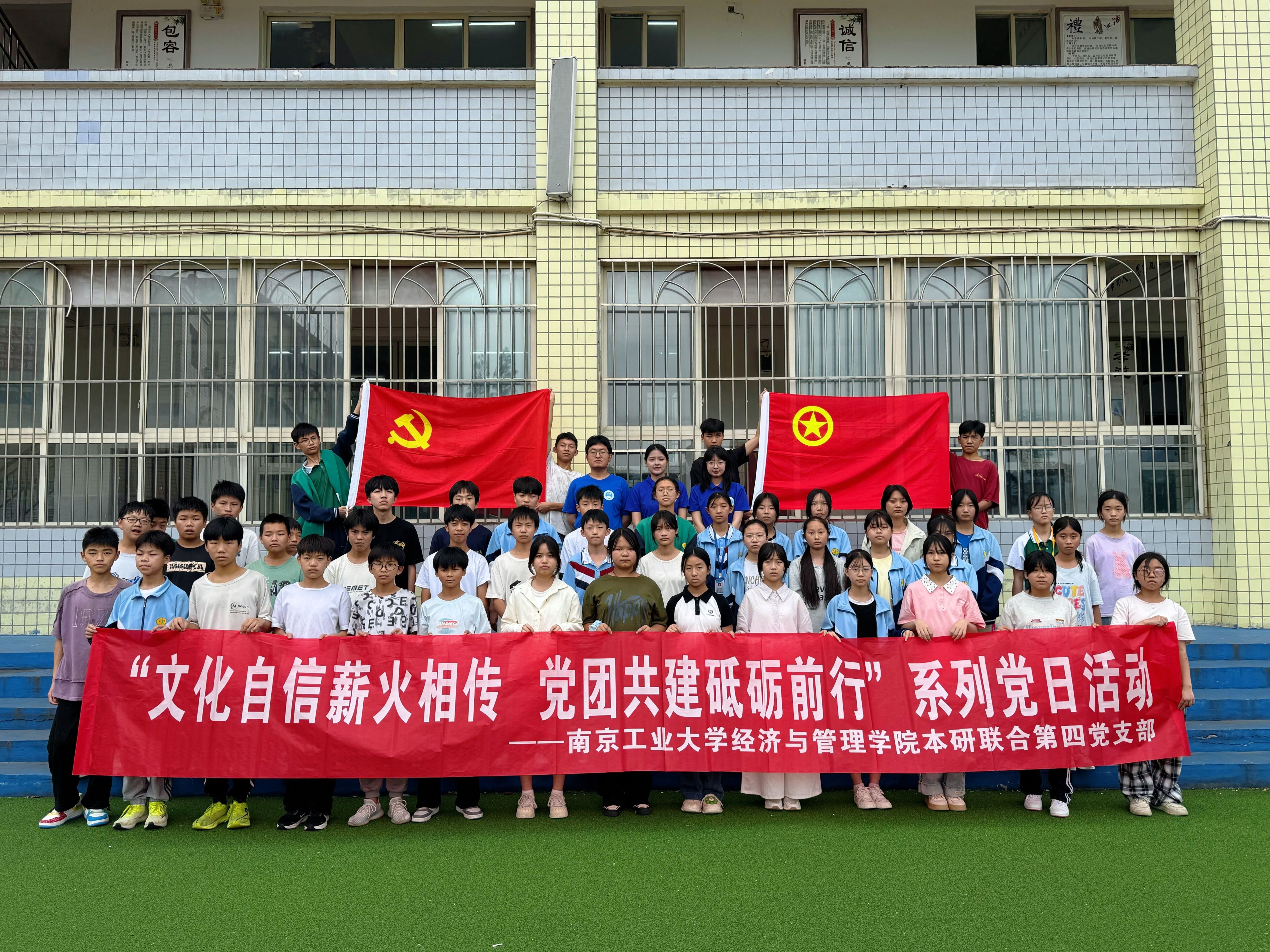 为深入学习贯彻习近平新时代中国特色社会主义思想,增强党员团员的文化自信与历史使命感,经管学院本研联合第四党支部于2025年6月20日在四川省沐川县利店中学校开展了“文化自信薪火相传,党团共建砥砺前行”主题党日活动。支部全体党员及利店中学校七年级二班同学参加。