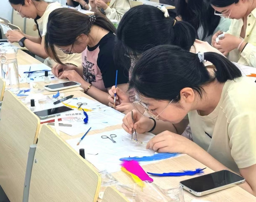 为扎实推进“三全育人”综合改革,创新心理育人模式,引导同学们探索内心世界,舒缓情绪。切实加强和推进育德与育心相结合的心理健康教育工作。5月25日,学院在笃学B207举办了“翠韵心途,点绘时光”点翠制作活动。