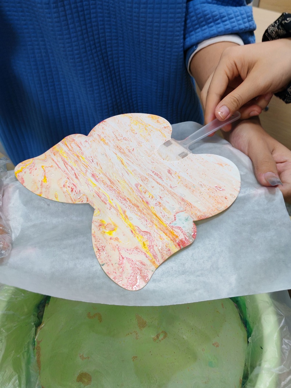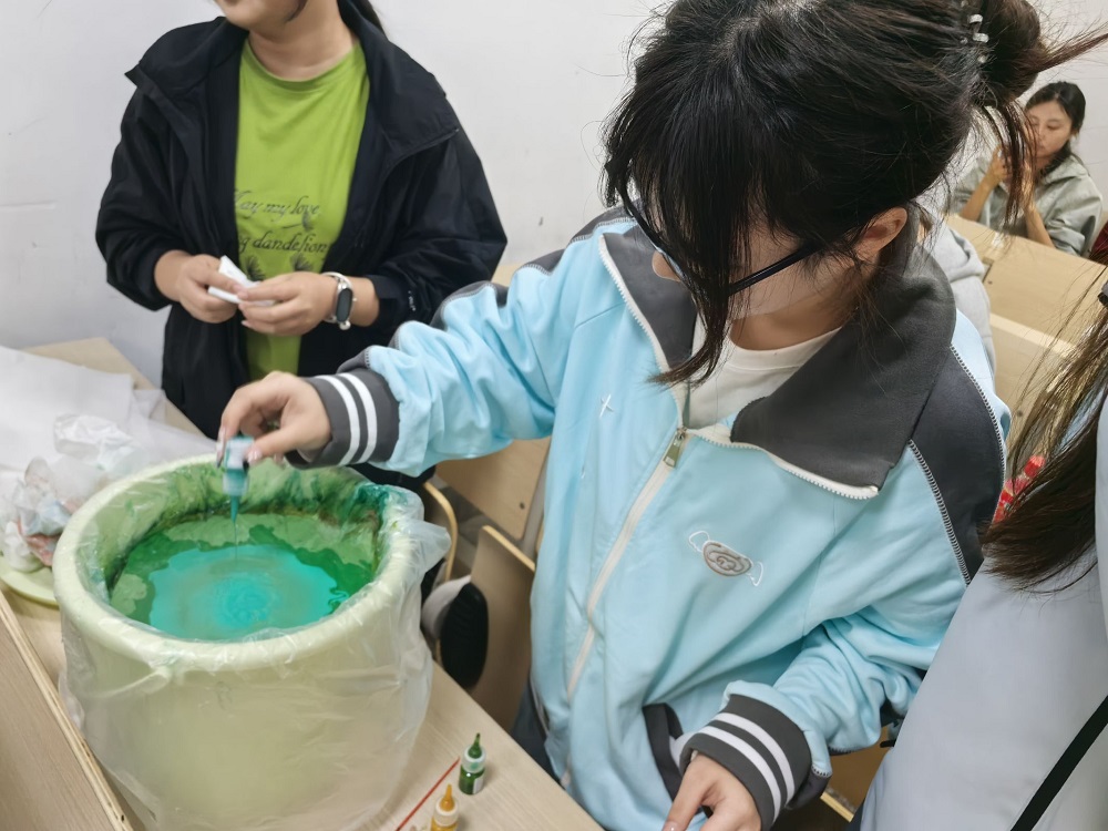 现场气氛热烈,同学们用双手将心灵与水墨共融,赋予扇面生命与情感,绘成了专属的心理画卷。随着墨水的渗入,同学们的心灵色彩缓缓展示,每一把漆扇都是内心世界的映射。