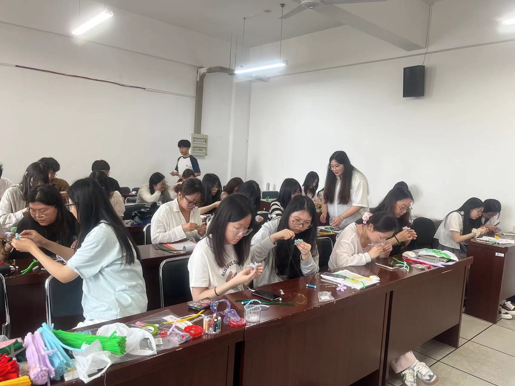 活动包括学习实践、深入研读、身体力行三个环节。活动伊始,支部组织委员陈奕名同学讲话,他强调了非物质文化遗产传承的重要性和必要性,并指出绒花作为江苏省人民政府批准的第一批省级非物质文化遗产代表的重要意义。接着,在非遗手工艺继承者徐彤同志的指导下,支部党员纷纷动手尝试制作绒花,一折一叠一捆,一朵朵精美的绒花在党员们的手中绽放。在学习实践环节之后,支部党员围绕中华优秀传统文化的内涵、价值以及传承与发展等方面展开了深入的研读和讨论,党支部副书记应源圆作了交流发言。最后党支部书记王娜总结发言,她强调新时代青年要担当起文化传承的使命,将习总书记关于文化传承的指示精神融入日常学习、生活和工作中,珍惜和爱护非物质文化遗产,以实际行动推动中华优秀传统文化的传承与发展,让中华文化的瑰宝在新时代绽放更加绚丽的光彩。