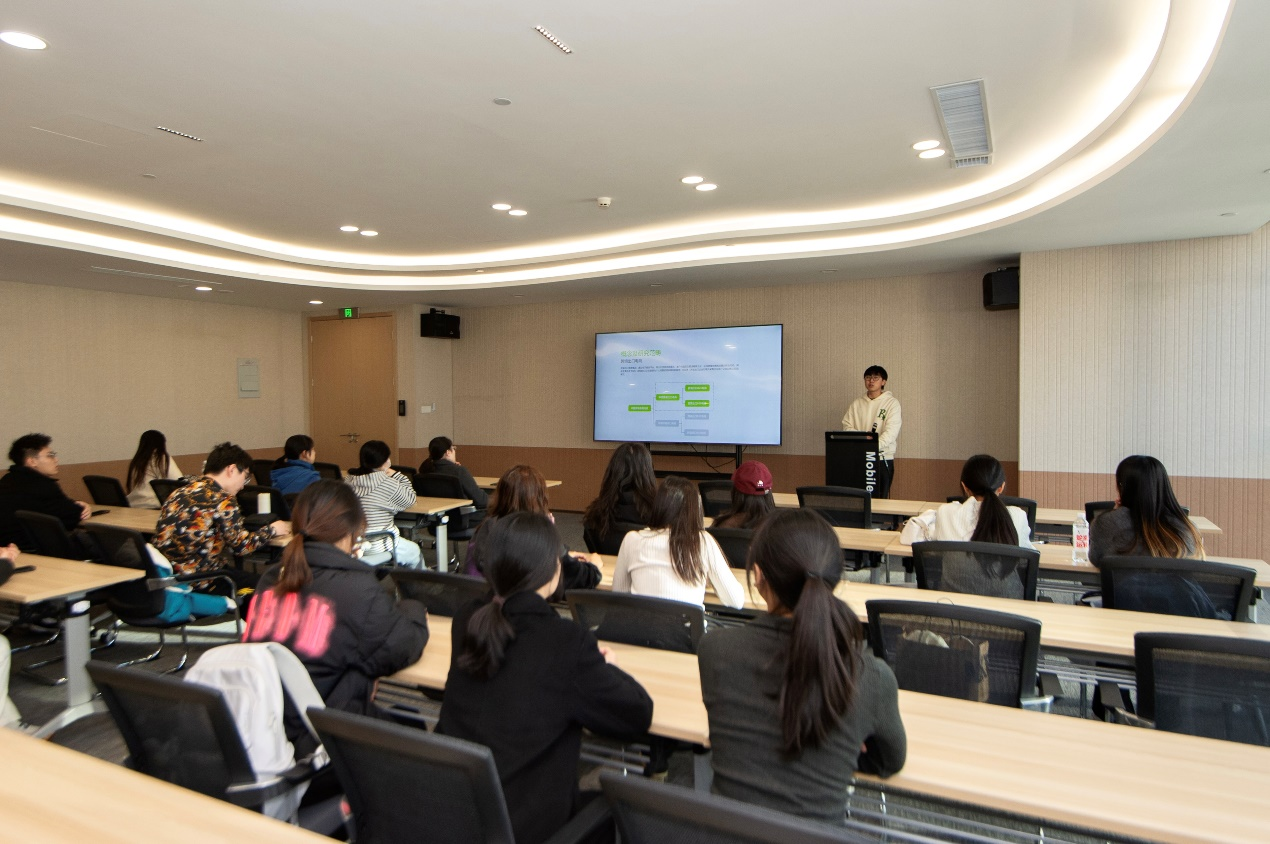 参观结束后,企业代表为为师生带来公司介绍及品牌出海案例分享。详细讲解了自主品牌“兰漪珠宝”从设计、营销到出海的全链路运营模式,特别是如何利用TikTok等社交平台实现品牌化运营与业务增长。在随后的互动环节,员工们就跨境电商的人才需求、职业发展路径以及行业未来趋势等问题,与企业代表进行了深入的交流与探讨。