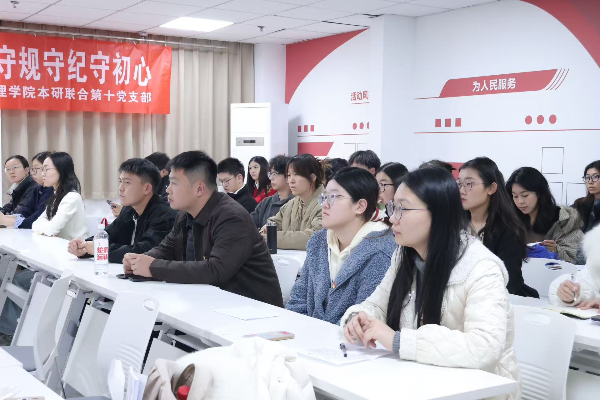 活动伊始,支部书记于苏婷对2025下半年新发展党员以及本学期组织关系新转入公司的2025级新生党员表示了热烈欢迎,并提出四点希望:一是希望支部党员深化理论认知,全面系统学习党章党规的核心要义和精神实质,明确党员的权利、义务和纪律;二是希望支部党员强化身份认同,增强对党支部的归属感和责任感,清晰地认识到党员身份的先进性;三是希望支部党员筑牢纪律观念,树立规矩意识,知敬畏、存戒惧、守底线,自觉用党章党规规范言行;四是希望支部党员争当先锋模范,在学术科研、服务同学、奉献社会等方面积极实践。