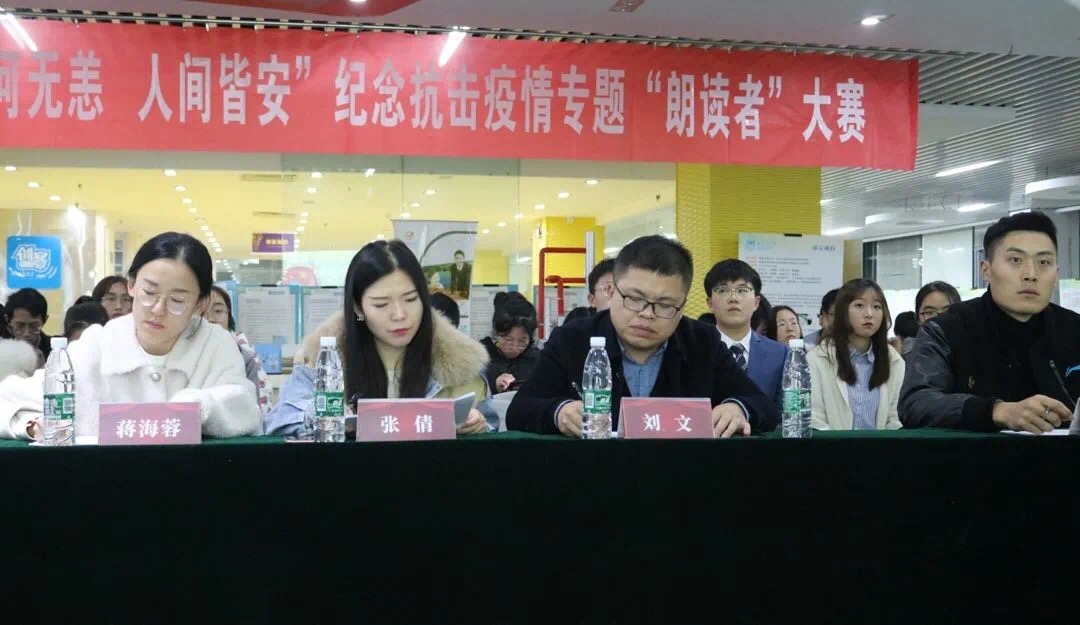 12月4日晚,由共青团bw西汉姆联委员会主办、bw西汉姆联承办的第五届朗读者大赛---“愿山河无恙,人间皆安”纪念抗击疫情专题决赛在逸夫图书馆二楼创客梦工厂举行。外语学院团委书记刘文老师、bw西汉姆联团委书记张倩老师、团委副书记王大庆老师以及辅导员蒋海蓉老师作为评委出席本次活动。