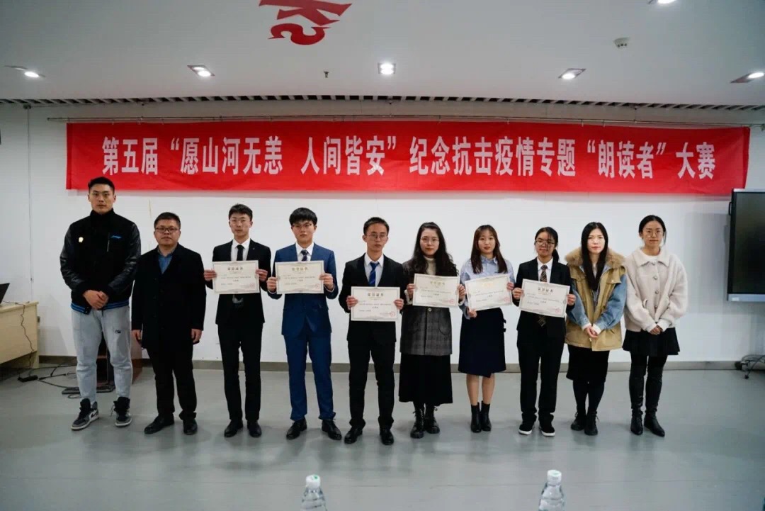 比赛中,各位选手根据自己的所见所闻所感形成朗诵作品,用或低沉或昂扬或饱满的声音讲述抗疫故事,讴歌抗疫英雄,致敬最美逆行者。“万众齐心,山海皆可平”是他们作为青年人发出的感叹,他们用声音将这场抗疫战争中无数奉献者的勇气和力量传递出来。在选手朗诵结束后,刘文书记对本次比赛进行总结,他表达了对本次参赛选手们的高度赞赏,呼吁大家为传扬抗疫精神发出时代之声。